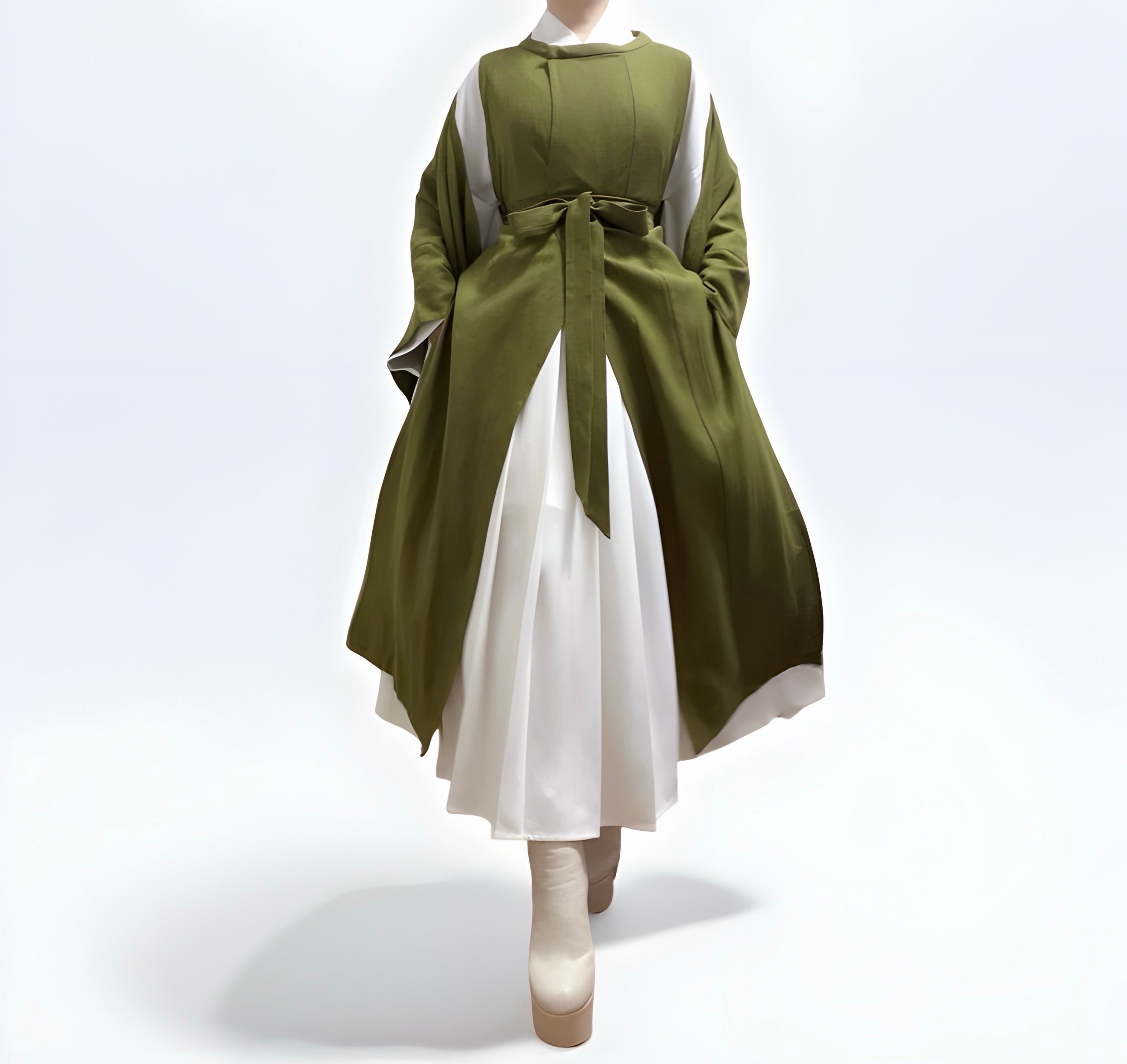 A new-style Japanese outfit that modernizes the traditional "kariginu" and "suikan" from the Heian period.