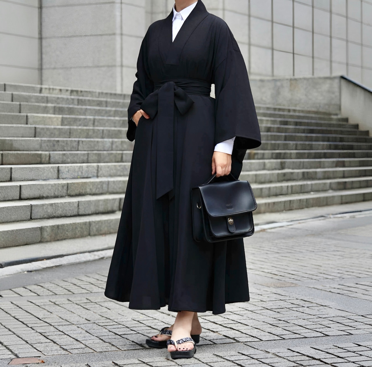 這款黑色袴裙在保有和風氛圍的同時,給人洗練印象,容易搭配各種造型。