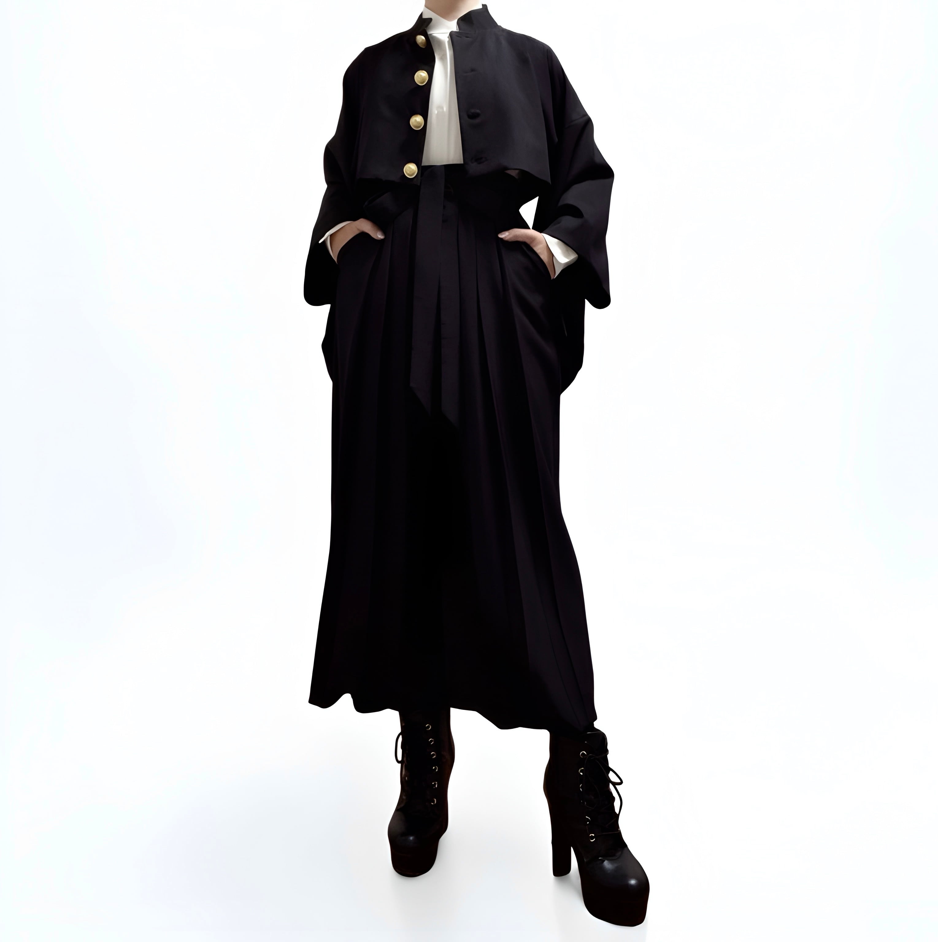 Black hakama pants that balance elegance and casual comfort.