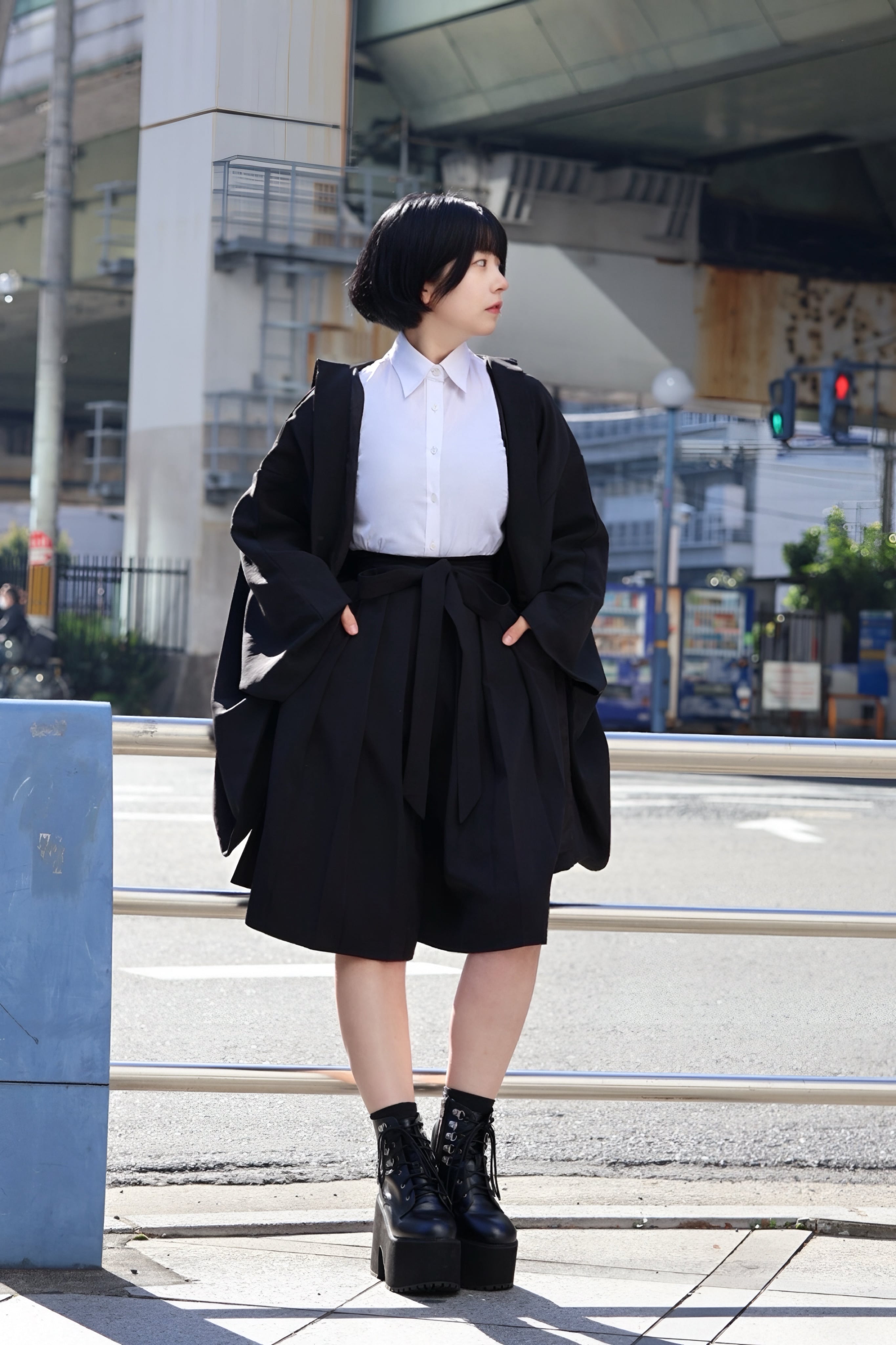 取り外し可能な袴紐も付いて、定番の袴スタイルはもちろん、お手持ちのベルト等を合わせてモード感をプラスした着こなしも楽しめます。