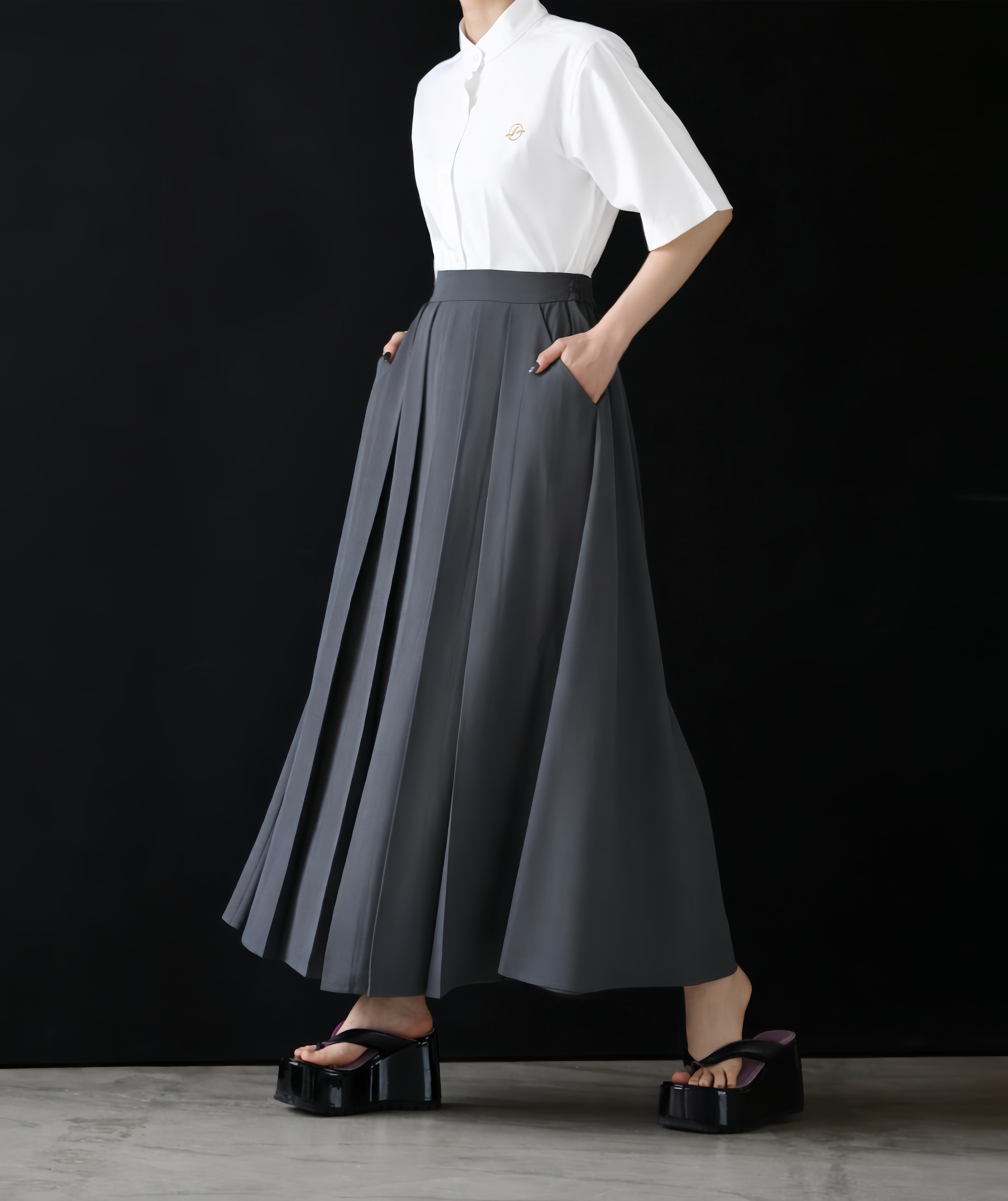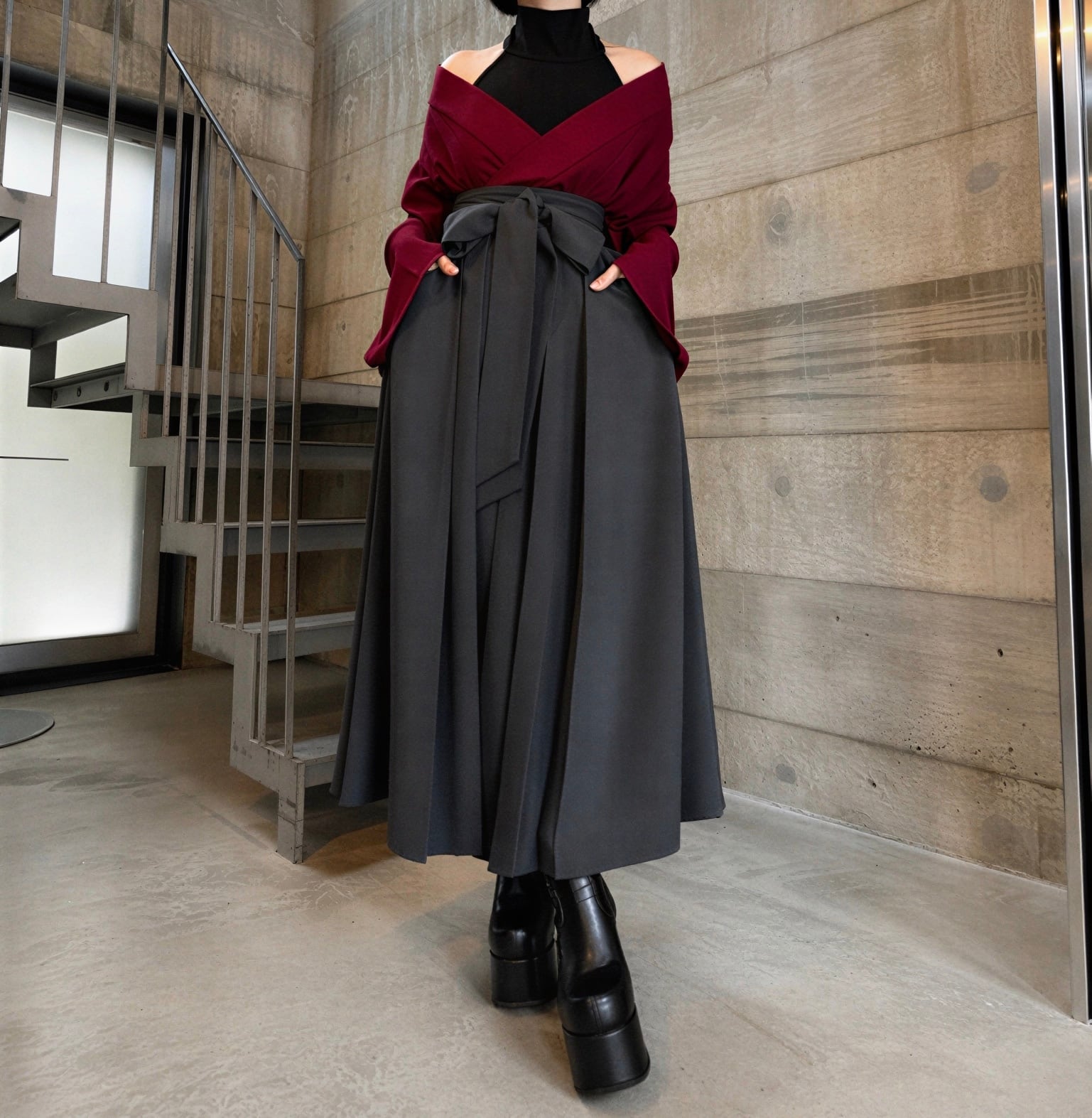 This elegant gray hakama skirt preserves a traditional Japanese atmosphere while offering a refined look that is easy to incorporate into modern styling. A versatile piece that works well with various tops and occasions.