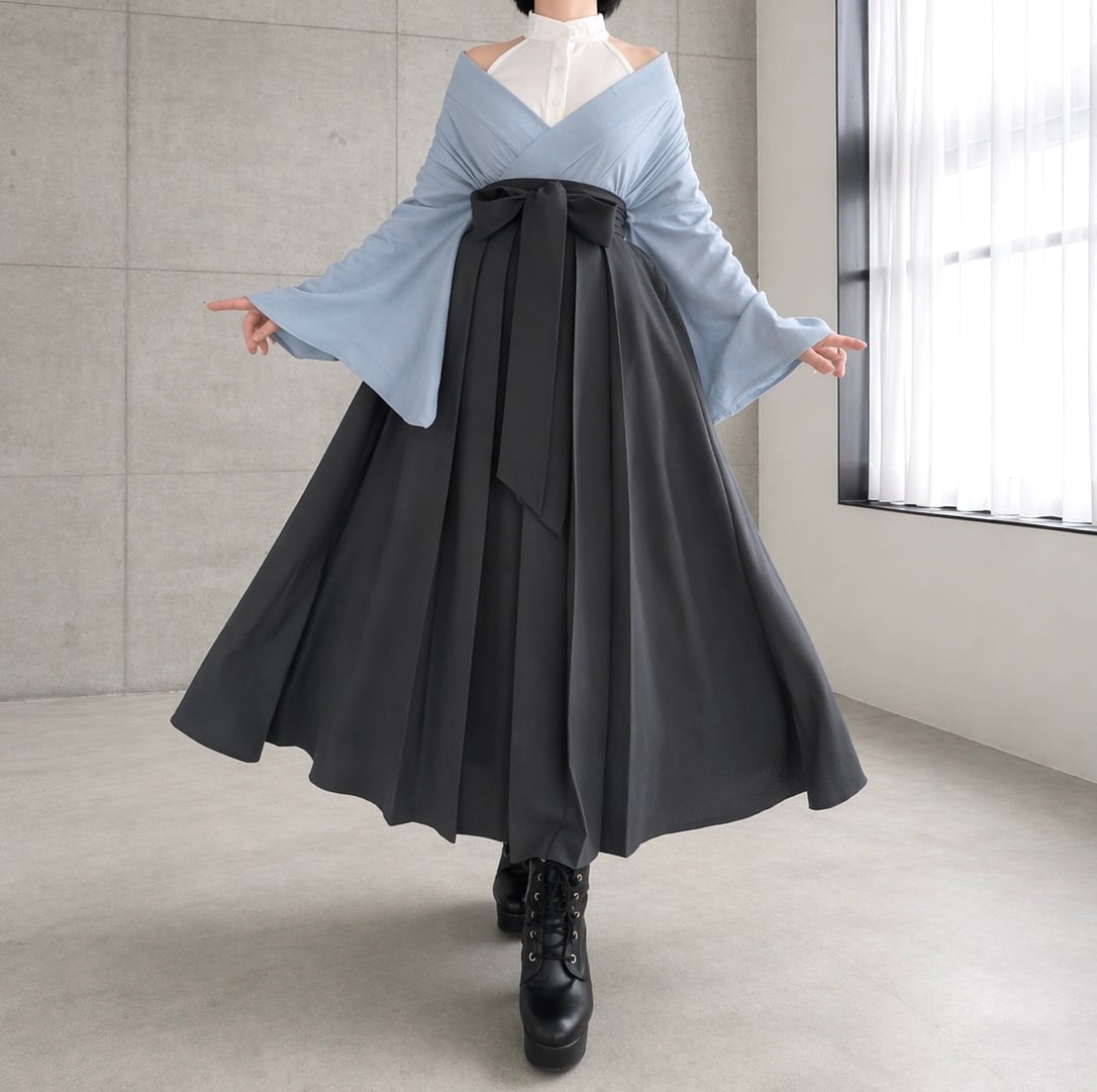 お手持ちのスカートに合わせて簡単に和洋折衷コーデを実現。