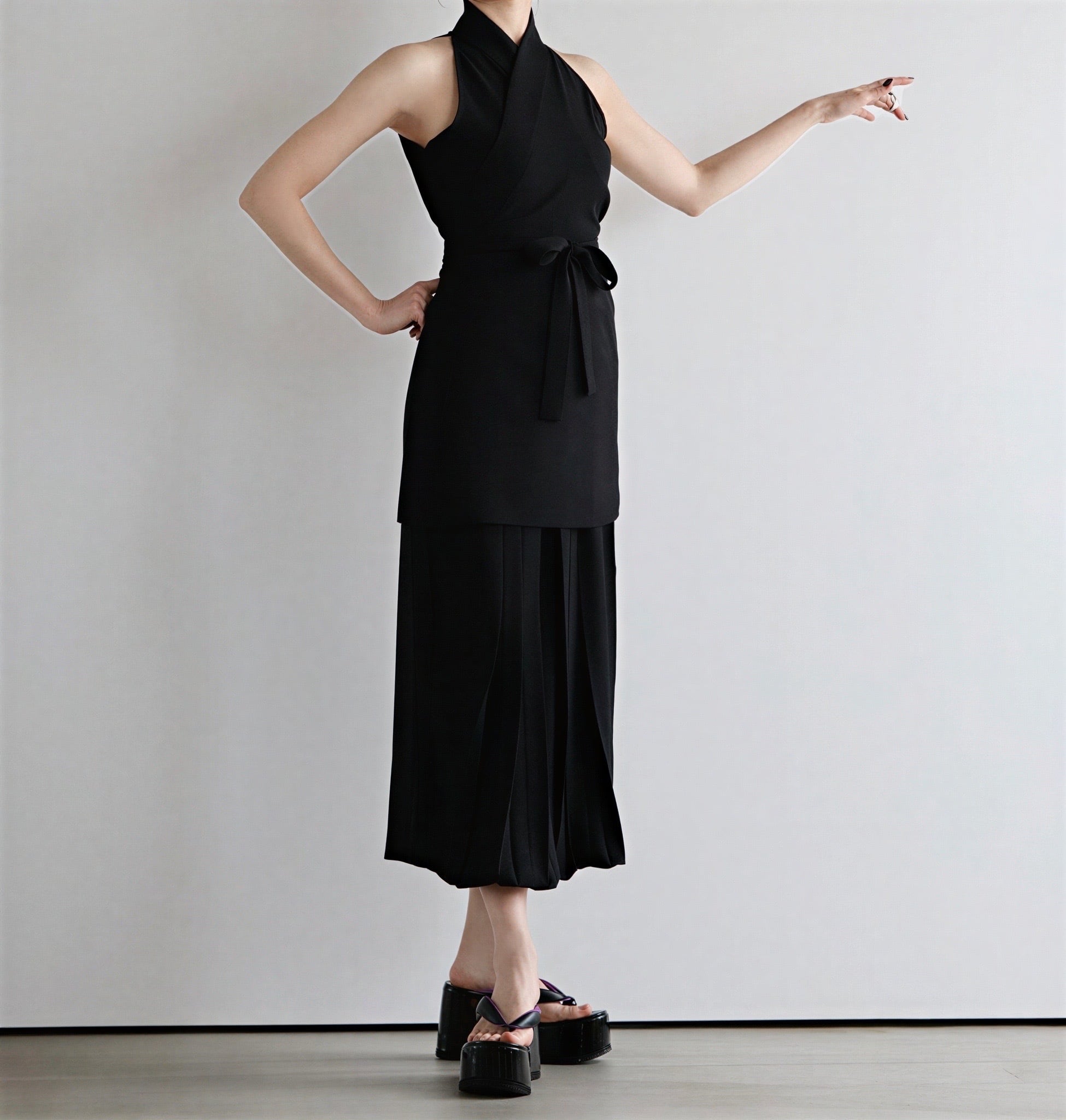 Inspired by sleeveless kimono styles from the Heian to Edo periods.