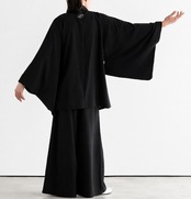 The embroidered crest on the back expresses a strong desire to expand the possibilities of kimono.