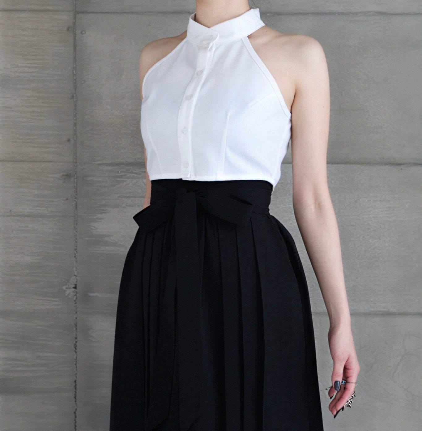 アメリカンスリーブの大胆な肩出しスタイルはそのままに、脇周りの露出は抑え、安心感のあるデザインに。