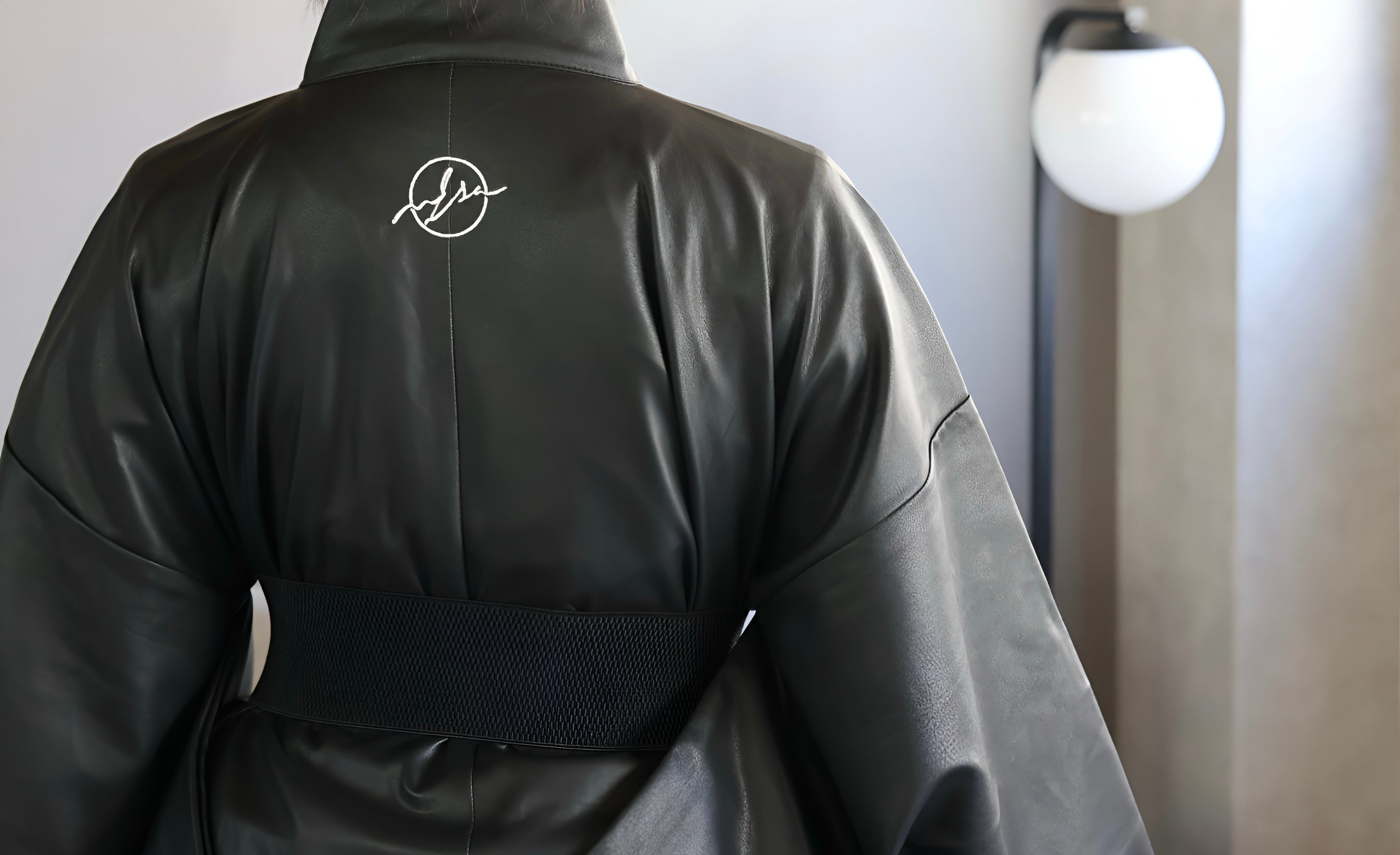 背中に刺繍された紋には、着物が持つ可能性をさらに広げたいという強い想いが込められています。