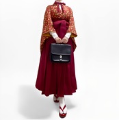 深みのある上品な赤色が、華やかさと落ち着きを兼ね備えた大人の印象を演出する袴スカート。
